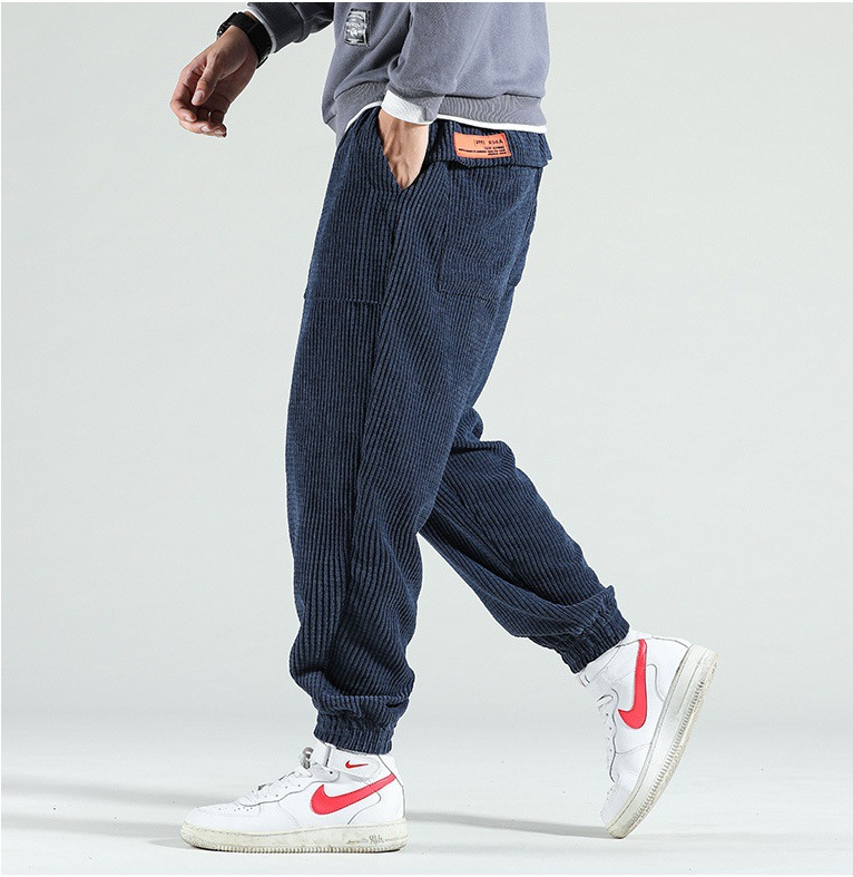 Deze navy corduroy jogger combineert moeiteloos comfort met een stijlvolle, moderne look. De broek is gemaakt van een zachte ribfluwelen stof die niet alleen warm en comfortabel aanvoelt, maar ook een verfijnde textuur toevoegt aan je outfit. Dankzij de relaxte pasvorm en elastische boorden sluit de broek perfect aan zonder in te leveren op bewegingsvrijheid. De verstelbare tailleband met trekkoord zorgt voor een persoonlijke fit, terwijl de diepe zakken praktische opbergruimte bieden. Ideaal voor casual dagen, streetwear-outfits of gewoon ontspannen weekends — deze jogger tilt je dagelijkse stijl naar een hoger niveau.